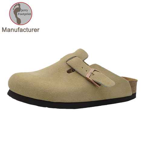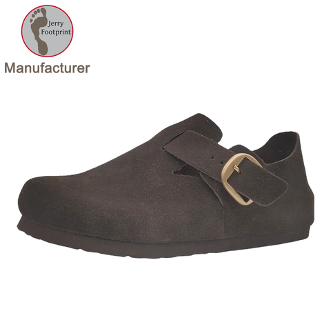 यूनिसेक्स प्रीमियम सूट चमड़े का कॉर्क क्लोज उच्च गुणवत्ता वाले कस्टम प्रिंट लोगो नॉन-स्लिप क्लोज-टो क्लॉक-टो मलेस फ्लैट सैंडल
